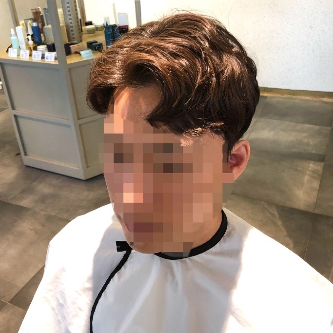 앞머리에 굵은펌을 넣어주고 이마가 살짝 보일 정도로 가르마를 타주면